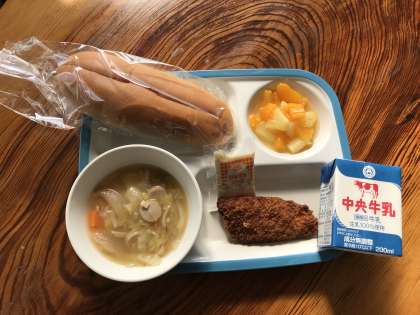 サンドイッチロールパン・牛乳・ホキフライ(タルタルソース)・ポトフ・フルーツあえ