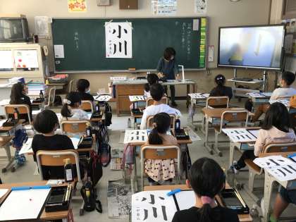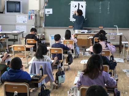 書写コンクールに向けて練習に取り組む様子です。