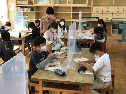 図工の作品作りの完成を目指して頑張っていました。