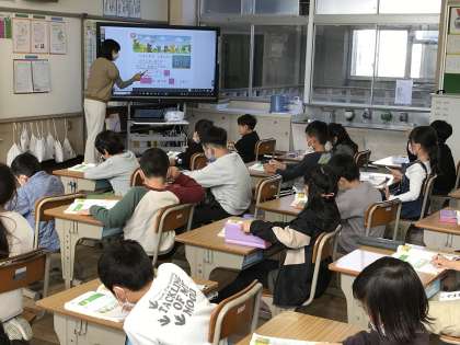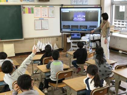 算数の学習や学年公開日に向けて映像を見る様子です。