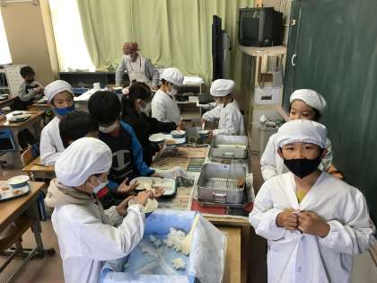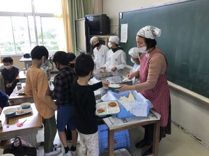 当番同士で協力して,配膳に取り組んでいました。