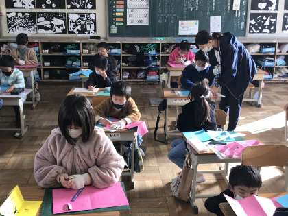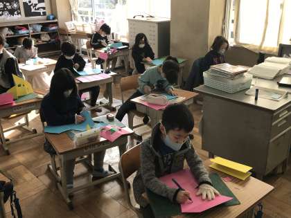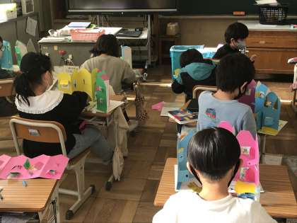 「まどからこんにちは」の作品づくりに取り組む様子です。