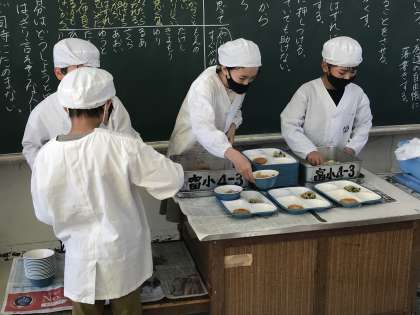 当番の役割に従って,てきぱきと準備する様子です。