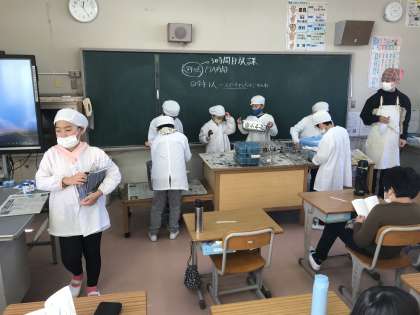 12/6 給食準備の様子(4年生)