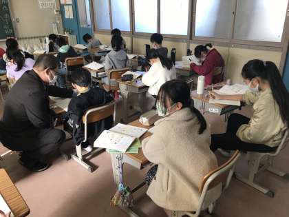 社会や算数の学習に取り組む様子です。SAの中川先生は,個別対応を丁寧に行ってくれています。
