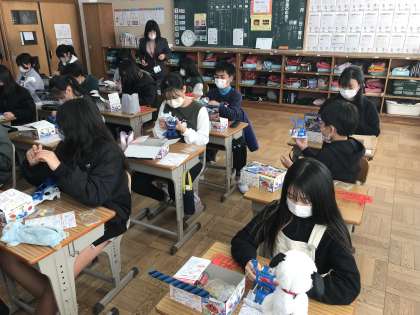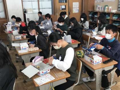 理科の電流の働きを学ぶためのキットを作成する様子です。