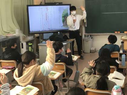 どの学級も国語「プラタナの木」について学習する様子です。
