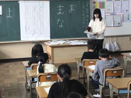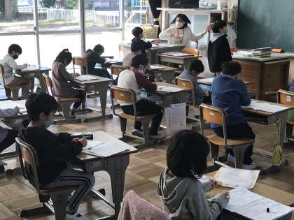 漢字学習や書写コンクールの清書の準備をする様子です。