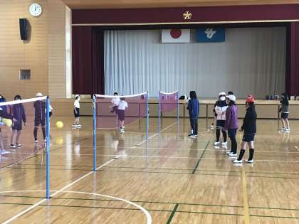 体育でソフトバレーボールに取り組む様子です。