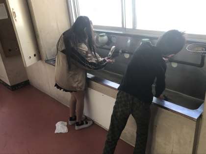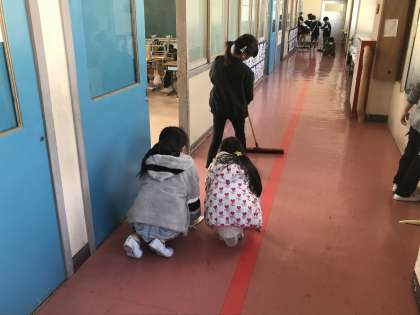 黙々掃除に取り組む様子です。責任をもって取り組んでいる様子です。