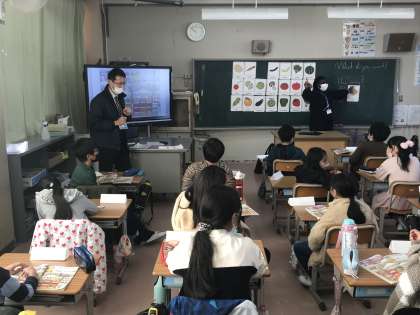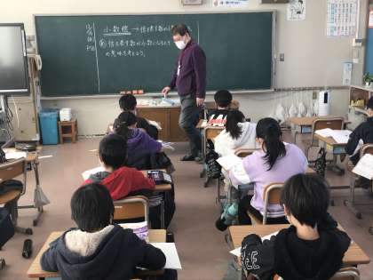ALTの先生と外国語活動を通して,英語に慣れ親しんだり,楽しんだりする様子です。また,算数「小数倍」について学習する姿も見られました。