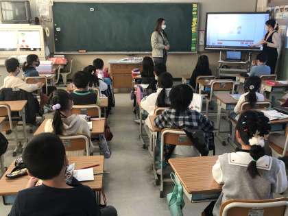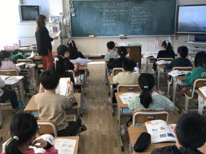 生活環境について考えたり,外国語活動でアルファベットの歌を歌ったりする様子です。