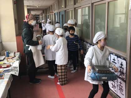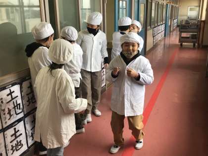 12/16 給食準備の様子(4年生)