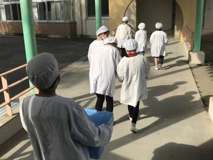 12/16 給食準備の様子(5年生)