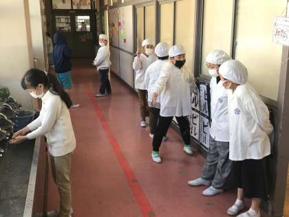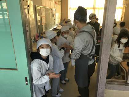 12/19 給食準備の様子(3年生)