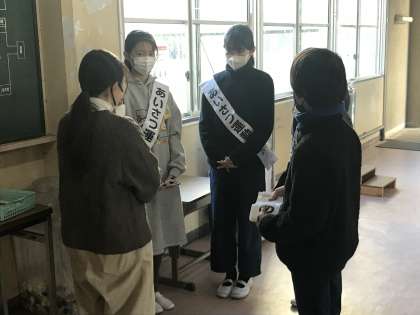 朝のあいさつ運動の反省会の様子です。人を元気づけるあいさつが飛び交う学校を目指したいですね。