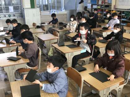 クーピーの削りカスを活用した作品作りの準備をする様子です。