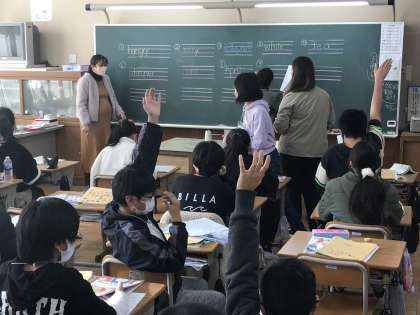 教科分担制による外国語・社会の学習風景です。