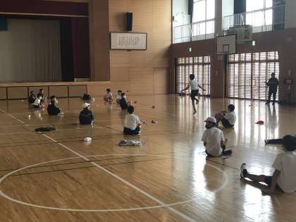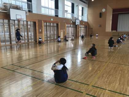 体育の授業において,縄跳びチャレンジに取り組む様子です。