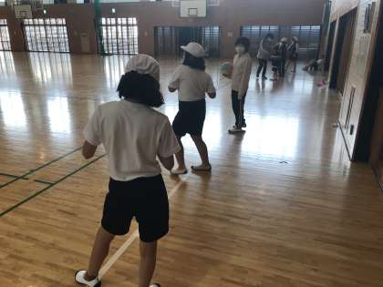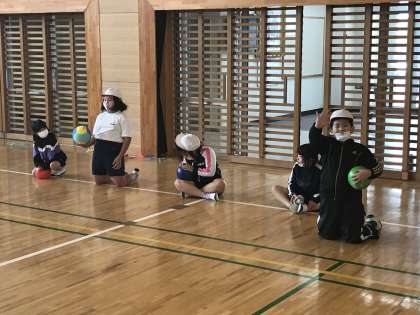 体育の学習でボール投げの練習に取り組んでいました。