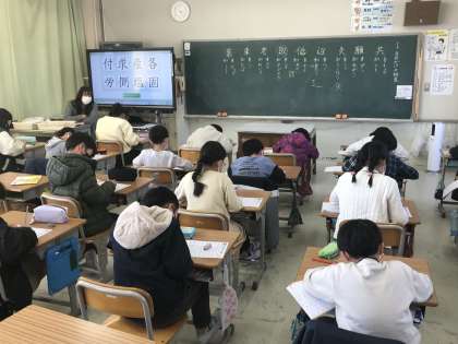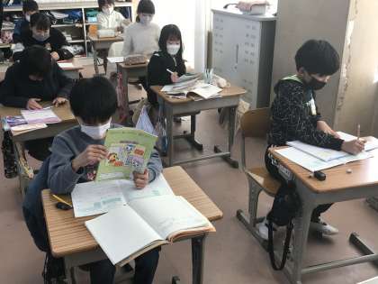 国語の漢字や詩の学習に取り組んだり,算数の計算問題に取り組んだりする様子です。
