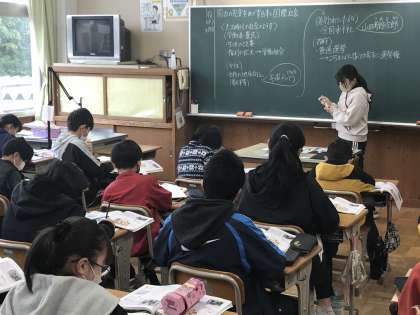 教科分担制による社会科の学習の様子です。