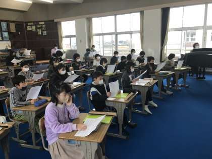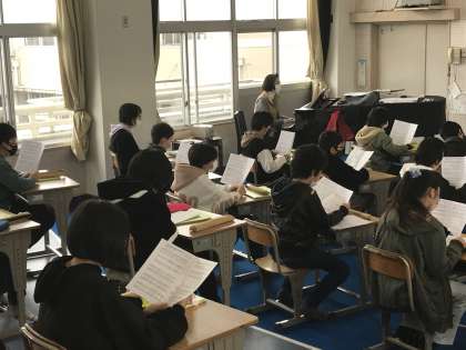 音楽の学習の様子です。卒業が近づき,歌唱練習も力が入ってきました。
