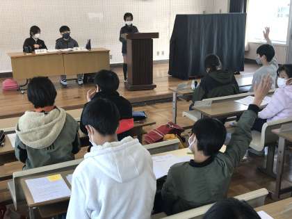 各委員会から議案書に沿って提案がありました。各学級で話し合った意見を出し合い,よりよい活動となるように審議する様子です。
