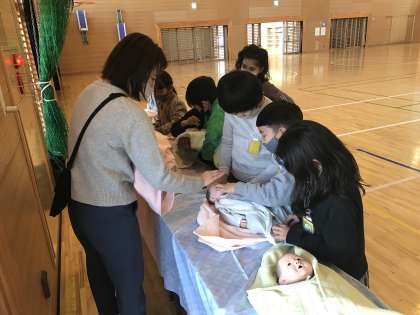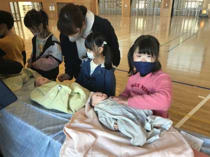 緊張しながらも赤ちゃんをだっこし,親の苦労を実感するよい機会となりました。