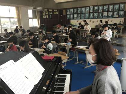 音楽でリコーダーの練習に取り組む様子です。