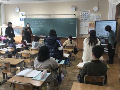 教科分担制による国語・外国語の学習が行われていました。また,気象情報について学習する姿も見られました。