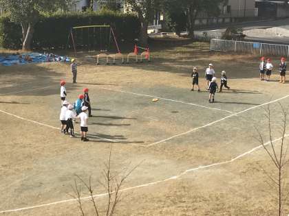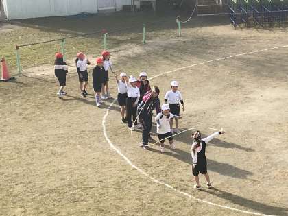 前庭で大縄跳びやドッヂビーを楽しそうに取り組んでいました。