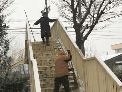 子どもたちの安全確保のため,時間外から職員が雪かきに取り組んでくれました。感謝感謝です。慌ててお手伝いをしようとして転倒するハプニングもありました。