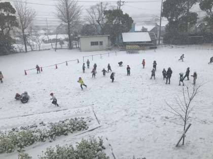 雪の中の体育です。子どもたちは,嬉しそうにはしゃいでいました。