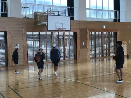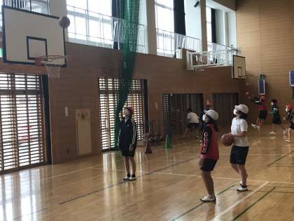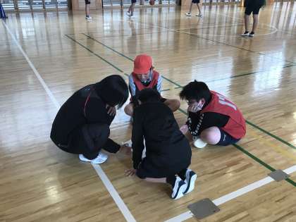 バスケットボールの学習において,チーム練習に取り組む様子です。
