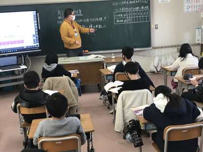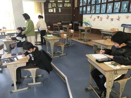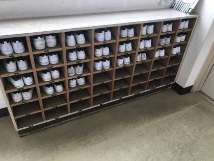 算数の学習や音楽の学習に取り組む様子です。音楽室の下駄箱は,はきものそろえができており,大変立派です。
