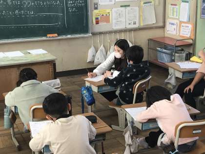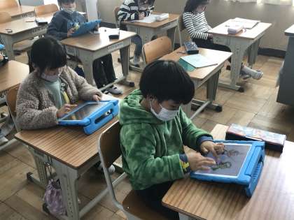 わたしのせいちょうをまとめたり,算数のタブレットドリルに取り組んだりする様子です。