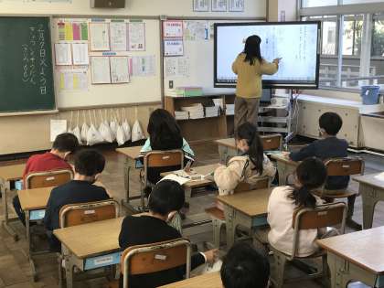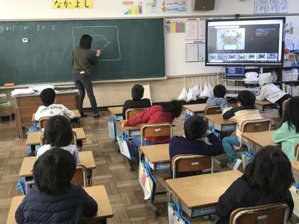「わたりがにを描こう」に取り組んだり,カタカナの学習に取り組んだりする様子です。