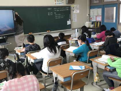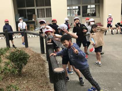 グラウンドに移動する前の様子です。また,理科の実験に関する説明をしっかり聞く様子も見られました。