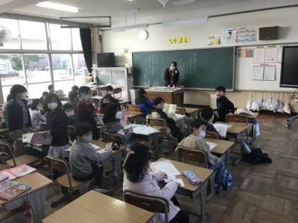 身の回りの整頓をして,朝読書の準備おする様子です。