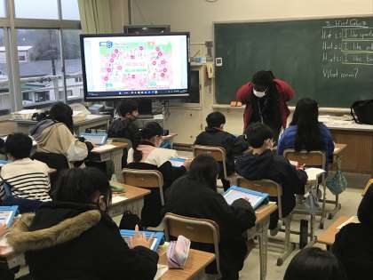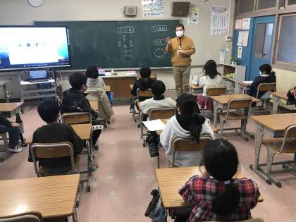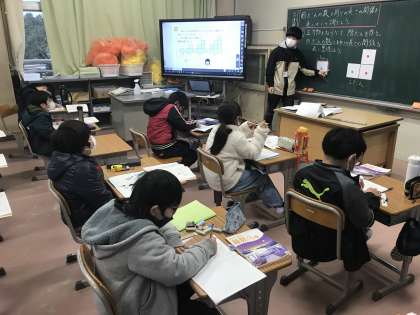 ALTの先生と外国語を学んだり,段と周りの長さの関係について学習したりするようすです。また,昨日の選挙を終えて,担任から立候補者や選挙管理委員の児童に労いの言葉をかけていました。