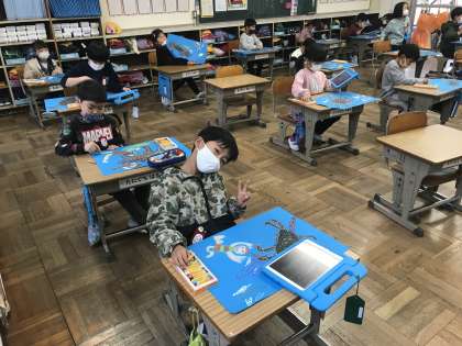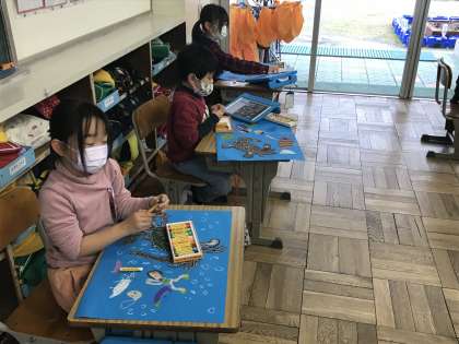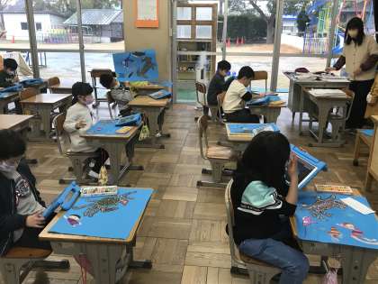 泳いでいる僕・私の作品作りに取り組む様子です。
