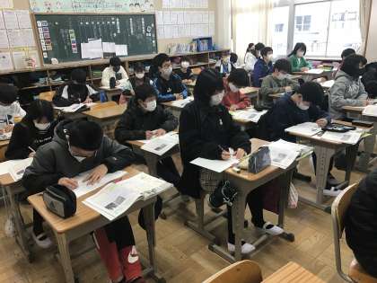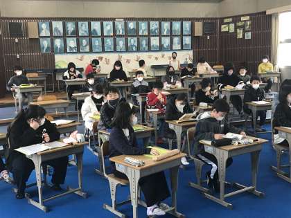教科分担制による社会の学習やリコーダーのテストを緊張しながら待つ様子です。