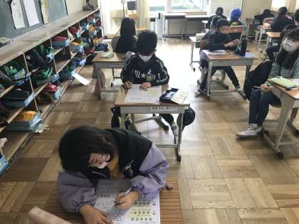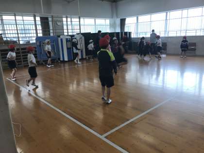 算数のプリント学習に取り組んだり,ドッヂビーで体を動かしたりする様子です。