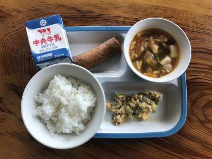 ごはん・牛乳・チャーハンのぐ・あいちのやさいいりはるまき・キムチスープ