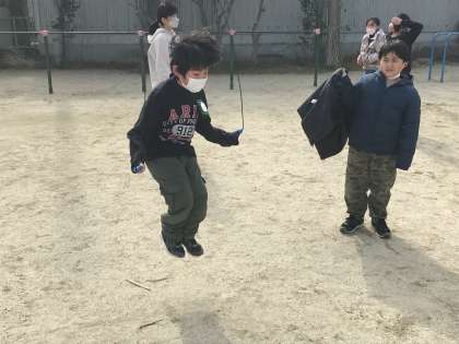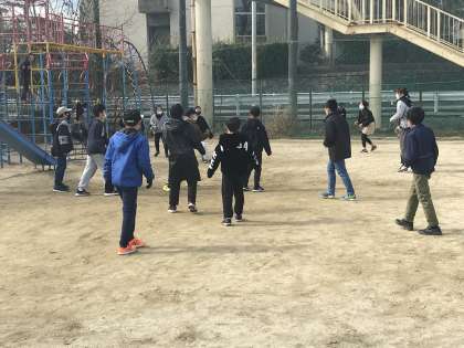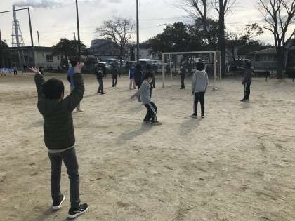 風がとても冷たい中ですが,元気よく外遊びするふきっ子の様子です。