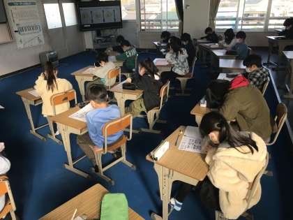 作品の説明文を作成したり,一年間の音楽の学習を振り返ったりする様子です。