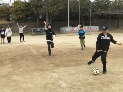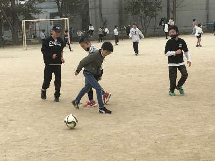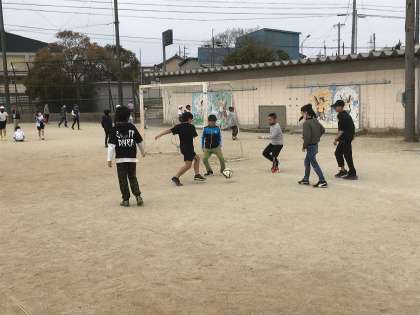 小学校最後の大放課をサッカーで楽しむ様子です。