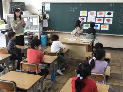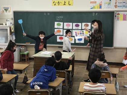 ALTの先生と英語を使ったゲーム遊びをする様子です。