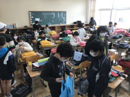 学活を終え,荷物をまとめ,帰り支度をする様子です。